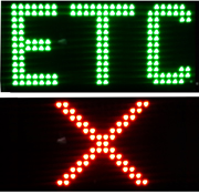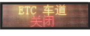 LED點陣式,顯示點陣32×128,點間距12mm,外形尺寸:1550×400mm,平均發光強度≥8000cd/m2,ETC車道運行狀態下一屏內應顯示: 黃色“ETC車道”+綠色“運行中”, ETC車道關閉狀態下一屏內應顯示:黃色“ETC車道”+紅色“關閉”。 并能夠編輯顯示其他內容,通訊接口:RS232/RS485標準接口;電源:AC220V +/- 20%;可視距離:>150m;工作溫度:-40℃~+75℃;工作濕度:5%~95%;MTBF: >= 50000h;視角:>30 °;防護等級:IP65。