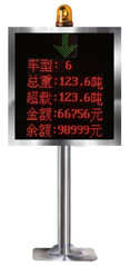 通過 RS232/422 接口與收費機相聯; 22位超高亮度16×16點陣漢字字符(76×76mm); LED亮度:紅色1400mcd~2300mcd; 可顯示任意漢字、數字及字母; 內置GB2132一、二級漢字字庫; (可顯示一位數車型,四位數費額,五位總重,五位限載,四位余額)。 自動或軟件 LED 亮度調節, 黃光報警及四組輔助輸入檢測與輸出控制; 不銹鋼機箱,箱體防水、防塵、防銹蝕,密封性IP65; 電源 :DC12V/AC220V; 功率 : 30W; 環境溫度 :-60 ℃ ~70 ℃; 相對濕度: 10%~95%; 外形尺寸 500× 480× 100(mm) , 立柱φ 60× 1000mm , 用于計重費顯; 黃光報警燈、語音報價可選。
