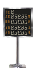 通過 RS232/422 接口與收費機相聯; 超高亮度LED數碼管(90X125mm); LED亮度:紅色1400mcd~2300mcd; 可顯示四位總重,四位限載,三位超限率; 自動或軟件 LED 亮度調節; 黃光報警及四組輔助輸入檢測與輸出控制; 不銹鋼機箱,箱體防水、防塵、防銹蝕,密封性IP65; 電源 :DC12V/AC220V; 功率 : 12W; 環境溫度 :-60 ℃ ~70 ℃; 相對濕度: 10%~95%; 外形尺寸(寬×高×厚):560× 470× 110(mm) ; 立柱φ 60 × 1000mm ; 用于治超站稱重顯示; 黃光報警燈、語音報價可選。